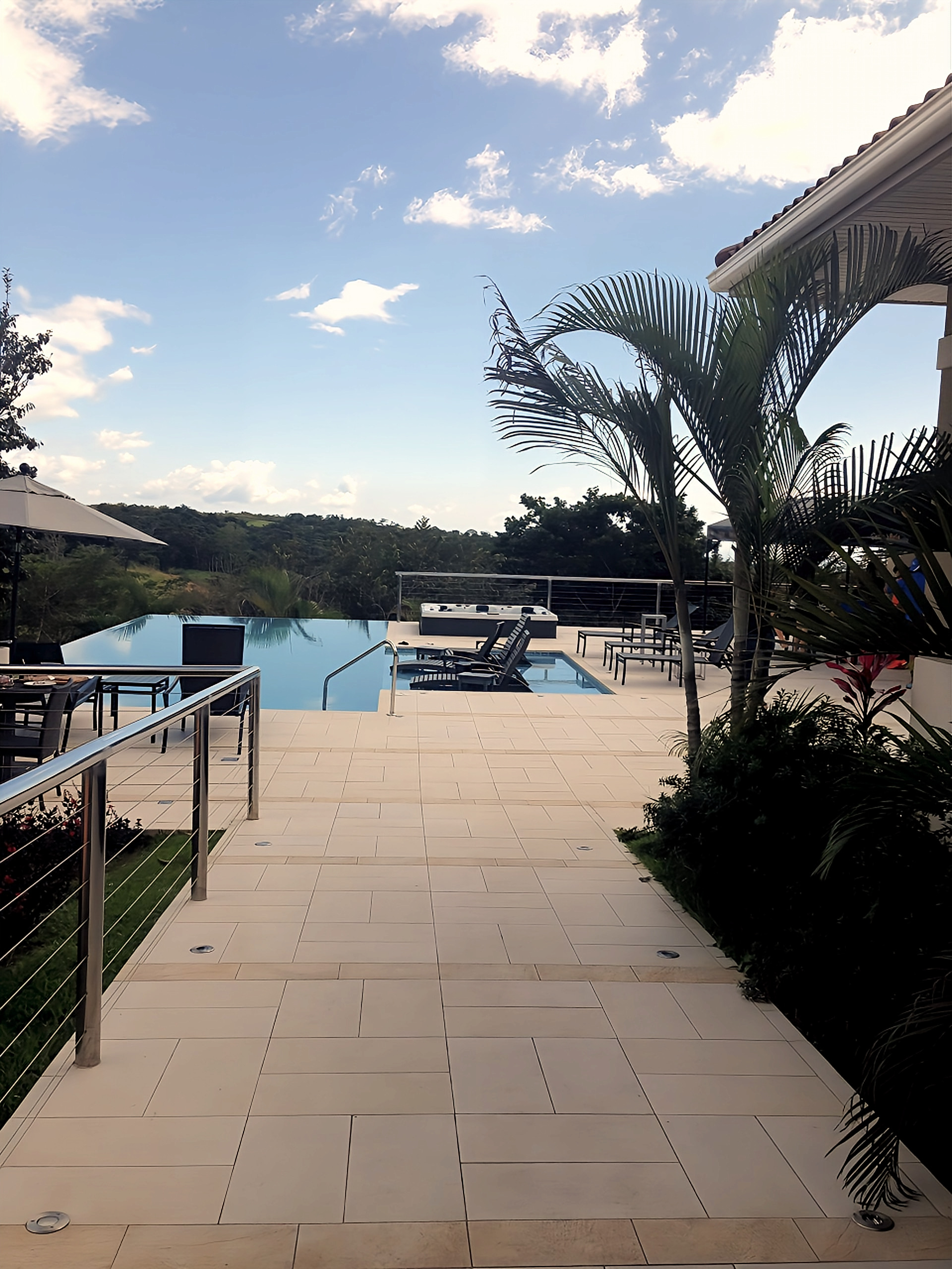 El proyecto comenzó en fase de construcción, ofreciendo asesoría a la propiedad de los diferentes revestimientos y acabados. Posteriormente, se desarrolló el proyecto completo de interiorismo de áreas clave, abarcando el bar, baños, terraza, zona de piscina y sus instalaciones complementarias, como vestuarios y sala de masaje.